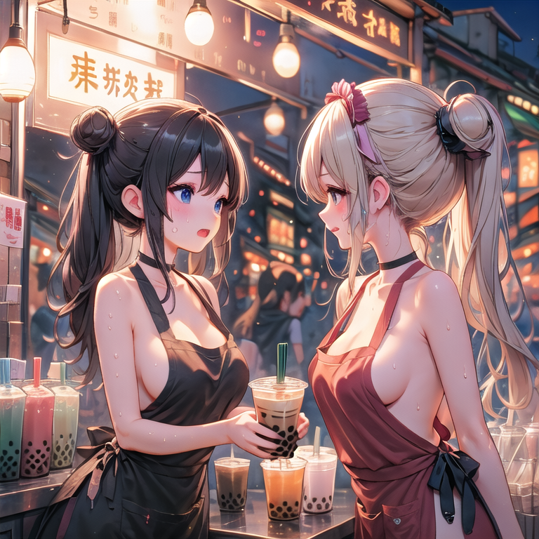 참고: "3girls"를 싫어한다면 소녀 수를 변경할 수 있습니다. 간판 조명이 너무 번쩍인다고 느낀다면 "구름이 많고 어두운 하늘, 황혼, 해질녘, 어두운, 낮"을 추가하세요. (ILXL)