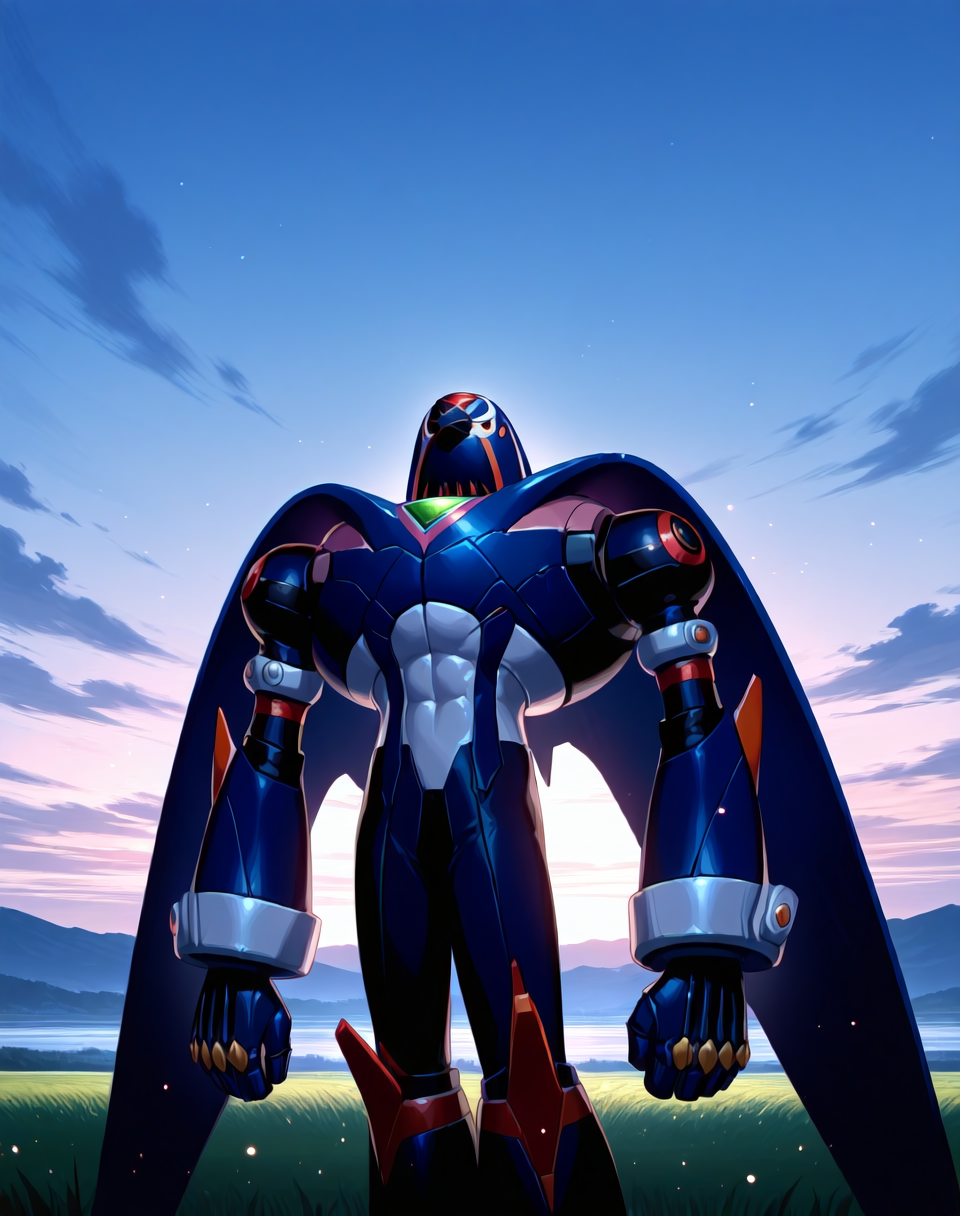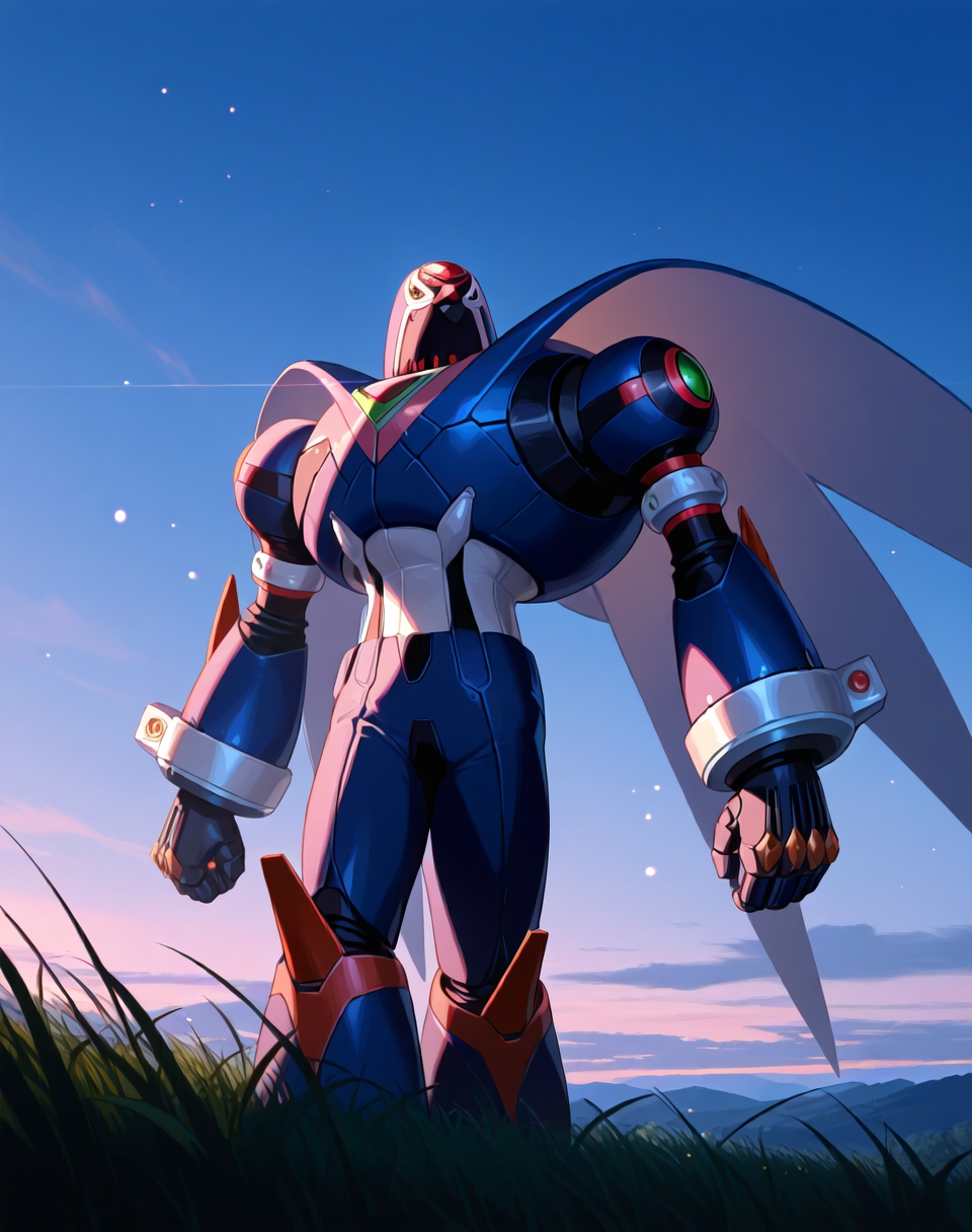 このLoRA向けのプロンプトは(Mach Jentra, reploid, MMX)です。