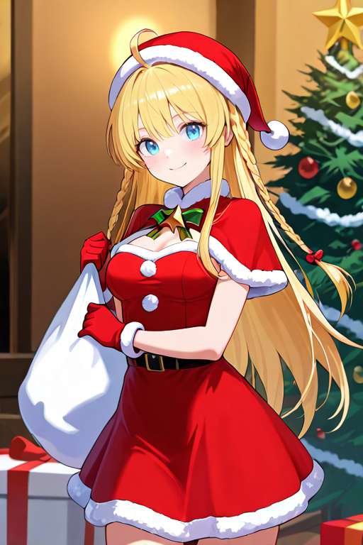 medium breasts, tichielnd, completely nude / bikini, santa costume etc.