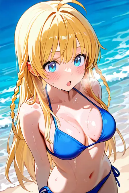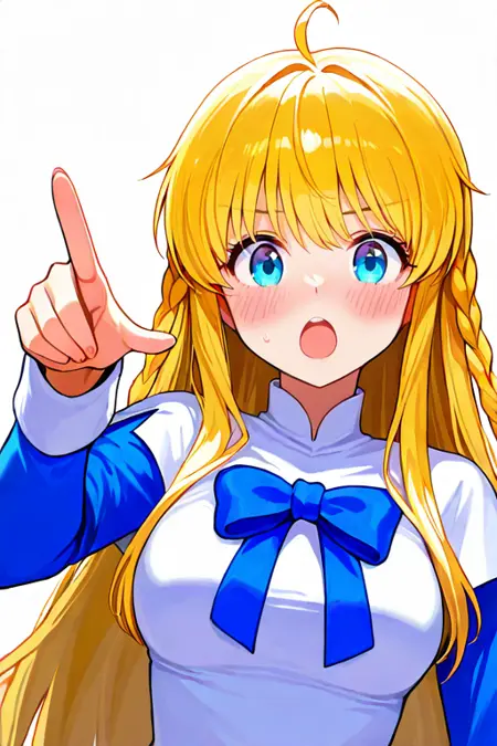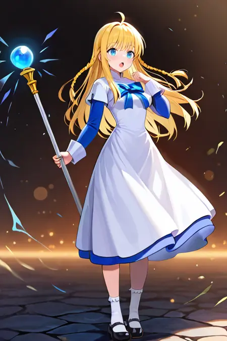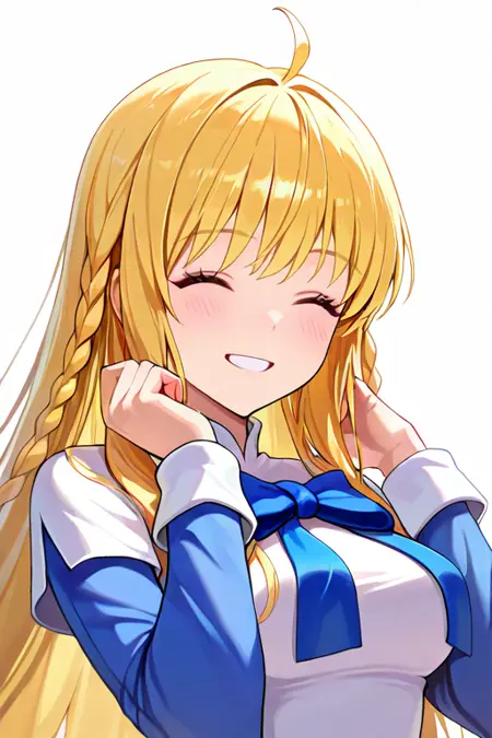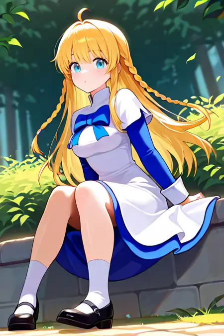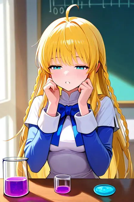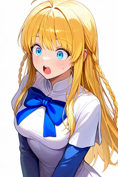 1girl, solo, tichiel_juspian, long hair, twin braids, blonde hair, ahoge, blue eyes,