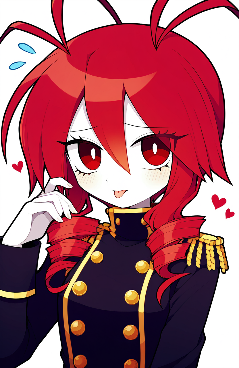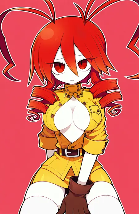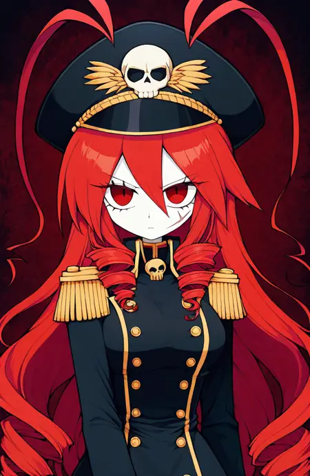 <lora:Lobco:1>,lobco \(funamusea\),lobco,1girl,antenna hair,drill hair,eyelashes,hair between eyes,long hair,pale skin,red eyes,red hair,twin drills,
