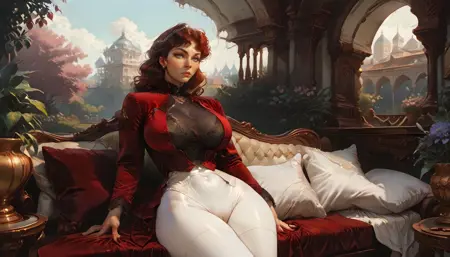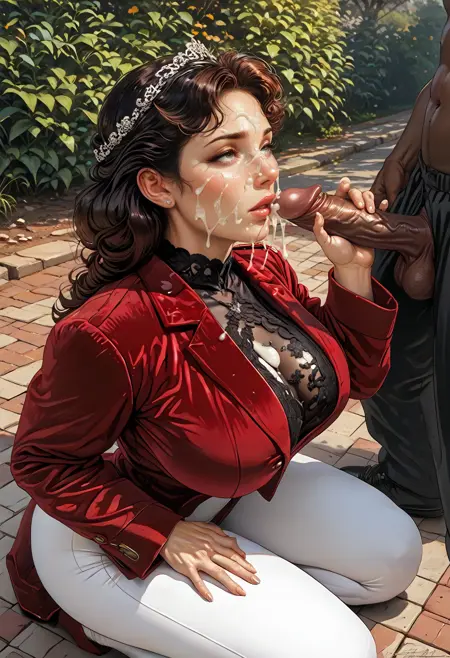 Main trigger is mommyvelvet and intended clothing is achieved with red jacket, black lace shirt, white pants.