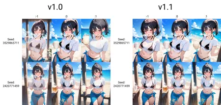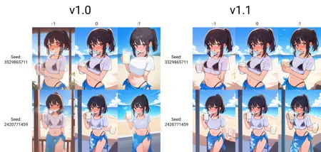 이 Lora는 컵에서 삼키기 전후의 장면을 표현하기 위해 설계되었습니다. Lora 가중치를 1로 설정하면 '삼키기 전' 상태가 되고, -1로 설정하면 '삼킨 후' 상태가 됩니다.