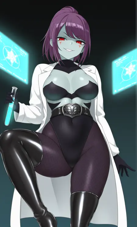 ゼルマ、ゼルマのベルト、フィッシュネットタイツ、ハイソックス、色付き肌、青い肌