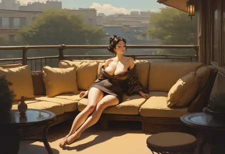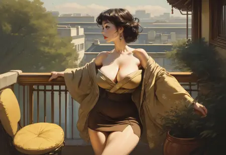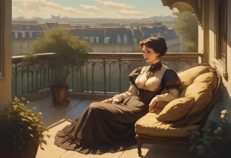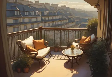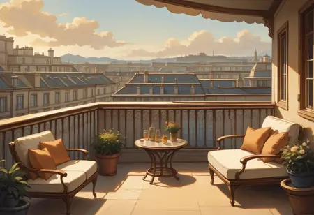 一个LoRA,用于在某个古老欧洲城市的复古露台阳台上设定场景。