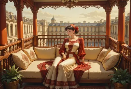 A lora to set the scene on a vintage terrace balcony in some old european city.