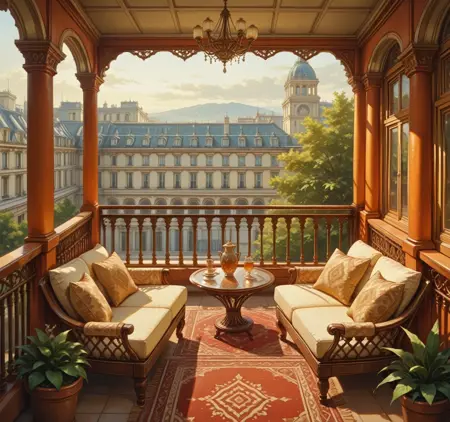 A lora to set the scene on a vintage terrace balcony in some old european city.