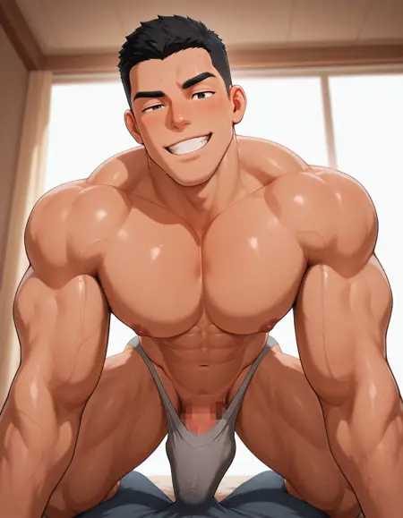 LoRAは、陰茎が勃起してウエストのゴムが伸びる様子で陰茎がのぞく画像を生成します。