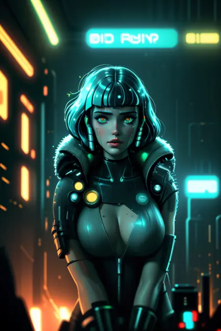 _(시도해 볼 샘플 프롬프트: "네온 조명이 비치는 바 카운터에 기대어 선 채의 사이버펑크 탐정, 영화적 스타일리제이션, 빗방울 반사, 동화책 조명")