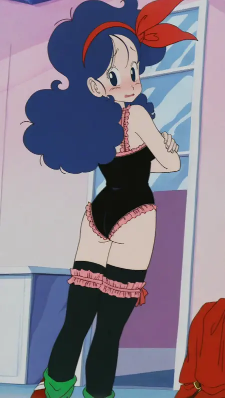 underwear outfit, leotard, frilled leotard, frills, thighhighs, frilled thighhighs, black thighhighs, underwear, red shoes, green socks, shoes,