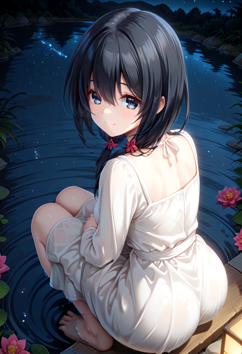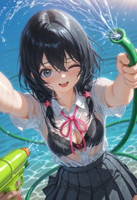 character: furube yurara \(haison\),dark blue eyes, black hair, large breasts,