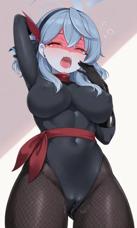 nurse shocker, white leotard, latex elbow gloves, latex stocking, fishnet pantyhose, nurse cap