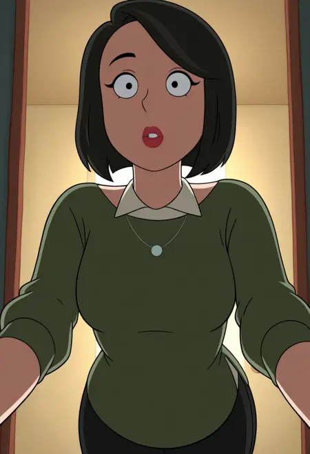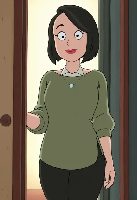 标签:mrsparkILL,成熟女性,黑发,短发,绿色毛衣,珠宝,项链,黑眼睛,红唇,刘海,白色领子