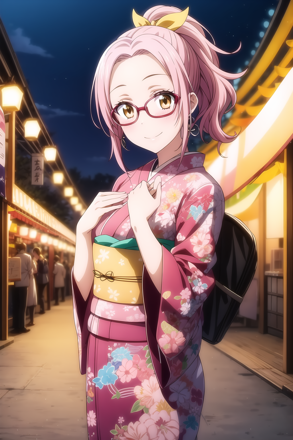 pink hair, ponytail, ember eyes