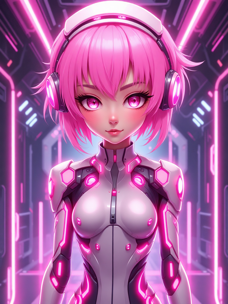 이것은 애니메이션 스타일의 사이버걸입니다.