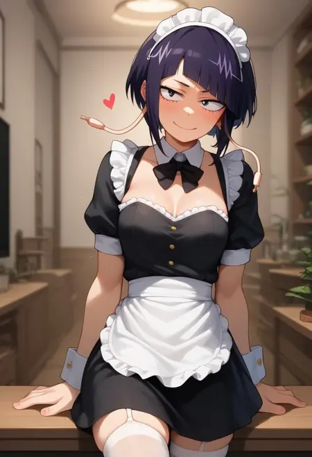 Kyoka Jiro,<lora:Kyoka_jiro V:1>,我的英雄学院,齐刘海,(耳垂),(耳机插头),紫发,短发,黑眼,小乳房,