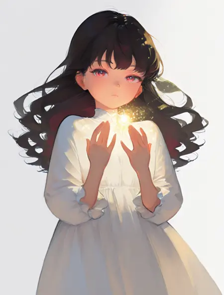 kate, very long hair, red eyes, black hair