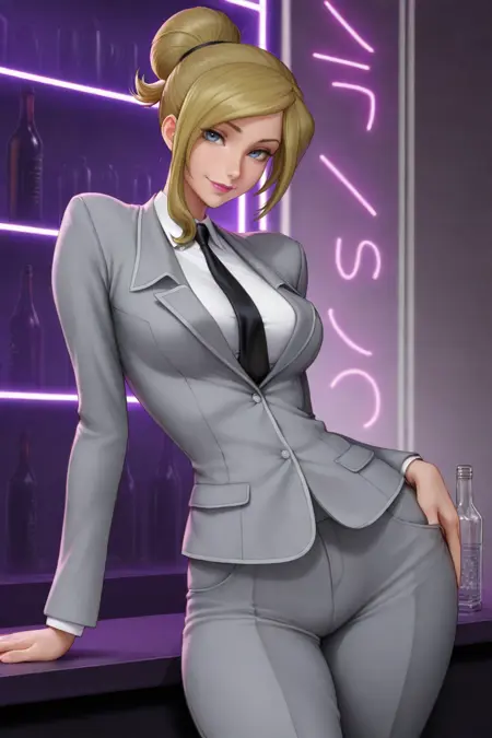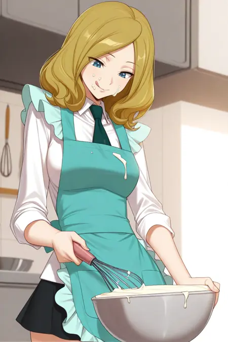 milly, 1girl, blue eyes, light brown hair, folded ponytail, asymmetrical sidelocks, single hair bun, lipstick