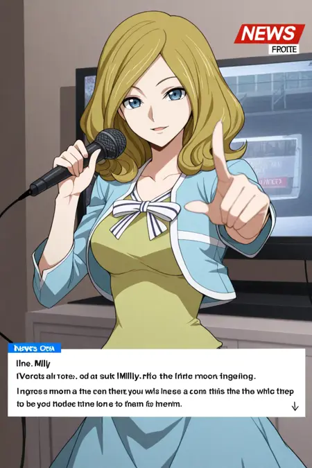 milly, 1girl, blue eyes, light brown hair, medium hair, flipped hair