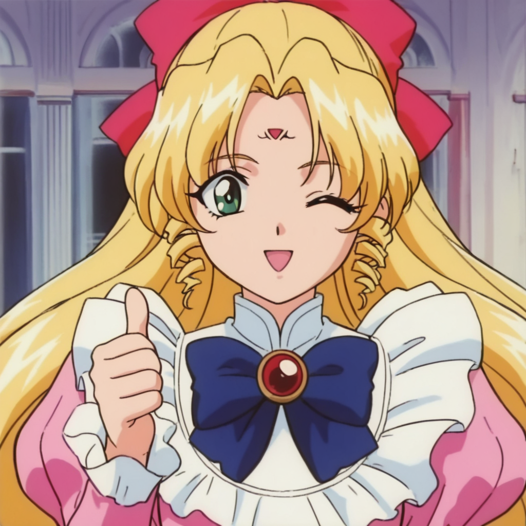 触发词: bkhbar,1girl,solo,blonde hair,long hair,drill hair,green eyes,forehead mark,