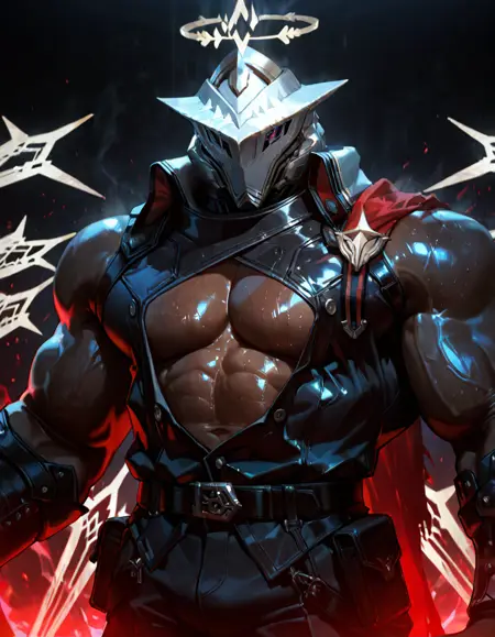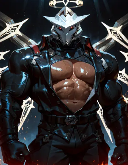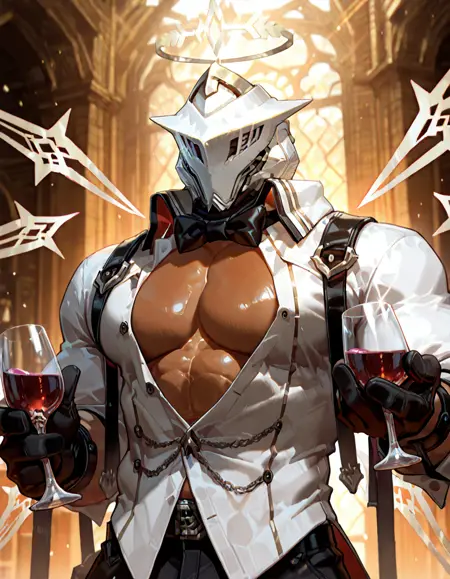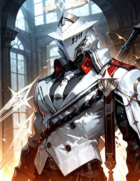 经典元素:饰带、装甲靴、缎带徽章、黑色腰带、胸甲、板甲、护手、胫甲、光环、头盔、腿甲、肩甲、护肩、红色胯帘、红色斗篷、红色肩章、小臂甲、白色盔甲、能量之翼、翅膀,