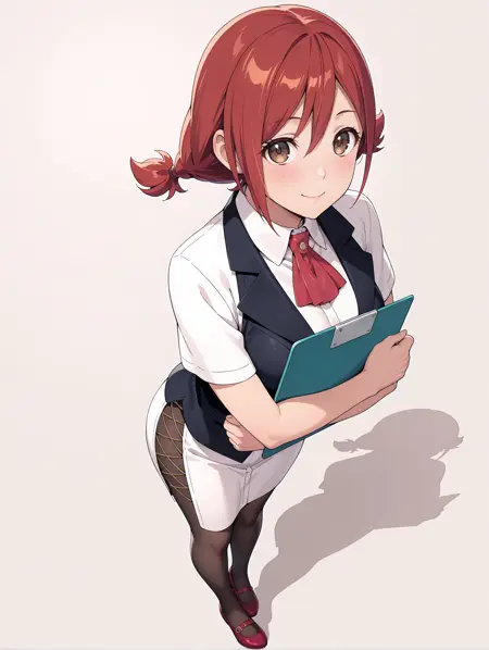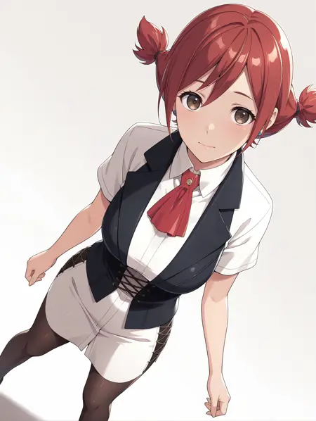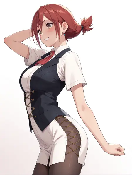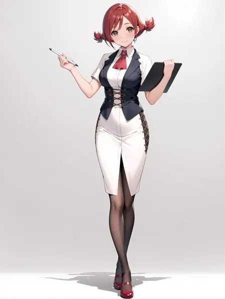 衣装 ・h_clothes,red ascot,black vest,tight skirt,black_pantyhose,,red footwear,