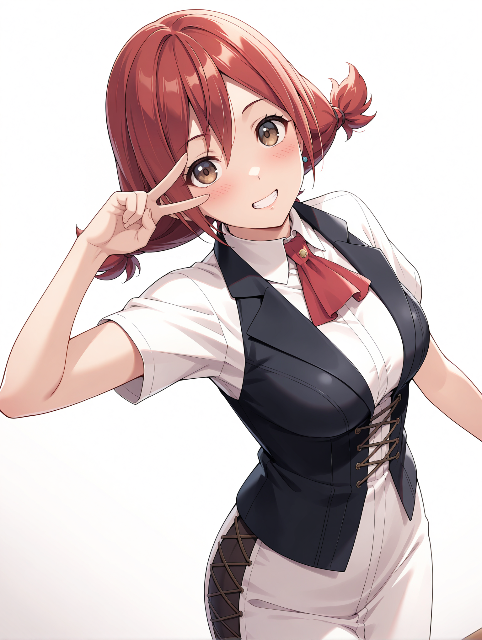 トリガーワード・t_h,short twintails,red hair,brown eyes,