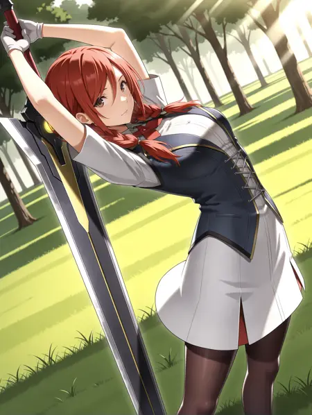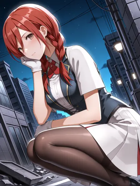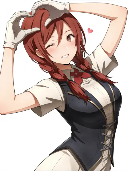 복장: h_clothes, 빨간 애스콧, 흰 장갑, 검은 베스트, 흰 치마, 검은 팬티스톡, 빨간 신발,