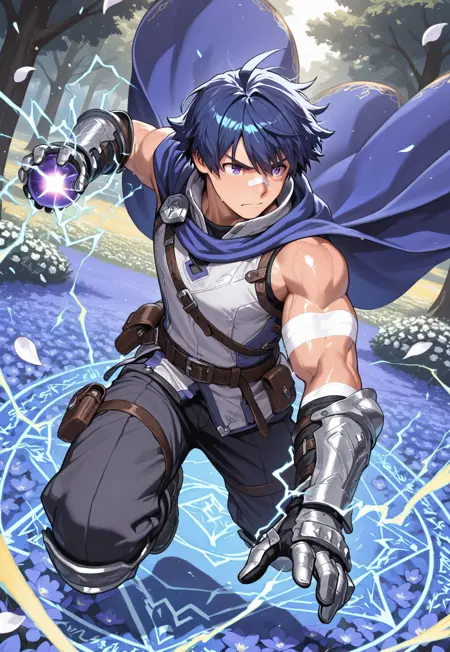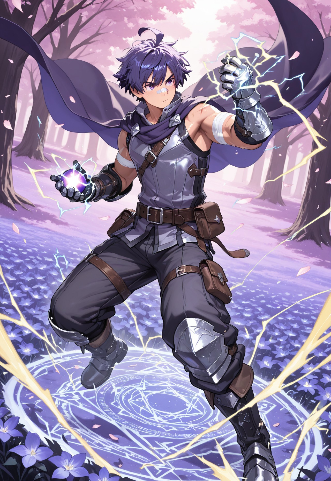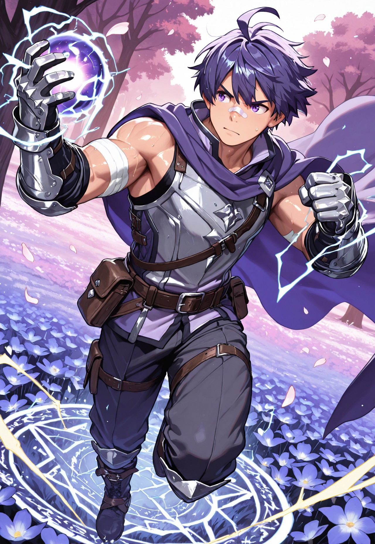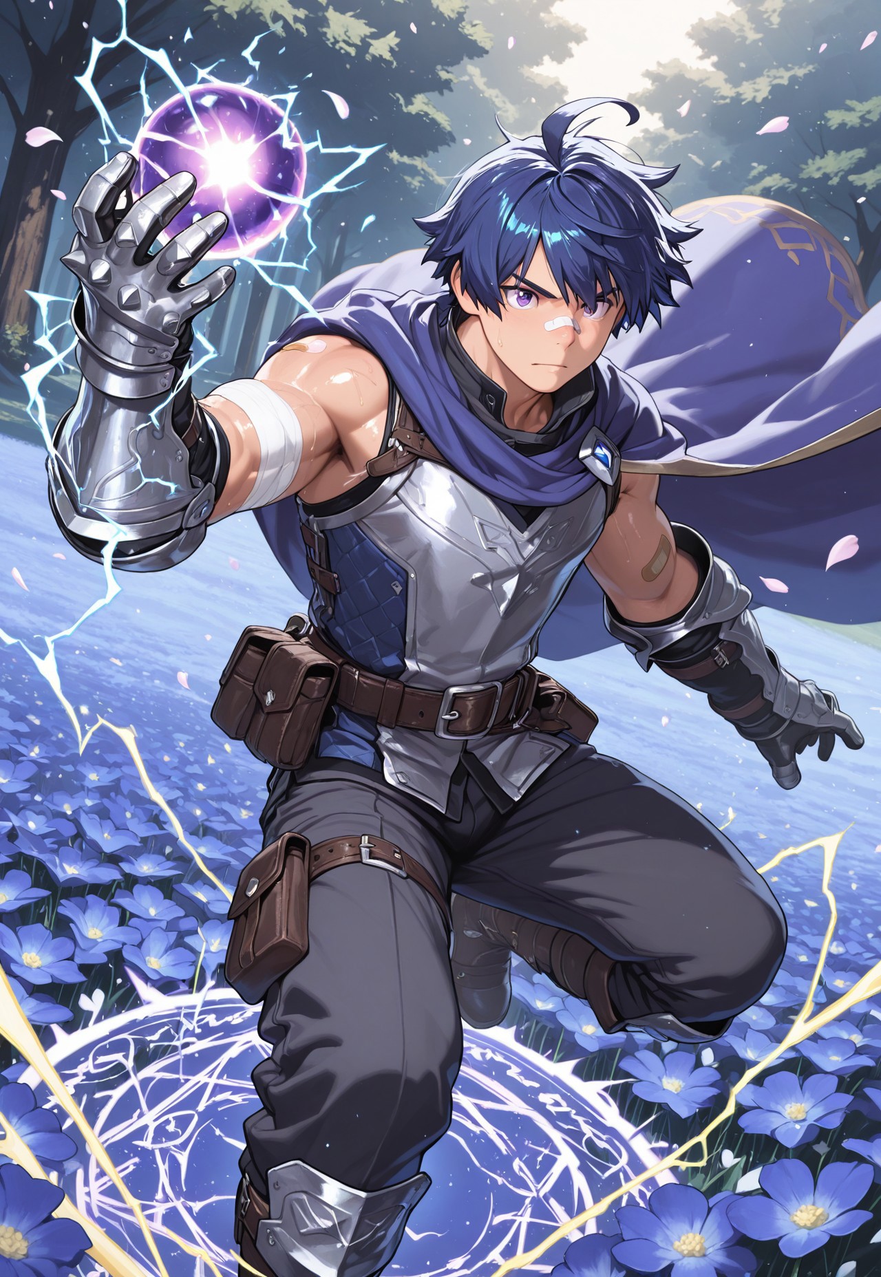 1boy, short hair, ahoge, indigo hair, indigo eyes, bandaid on nose,