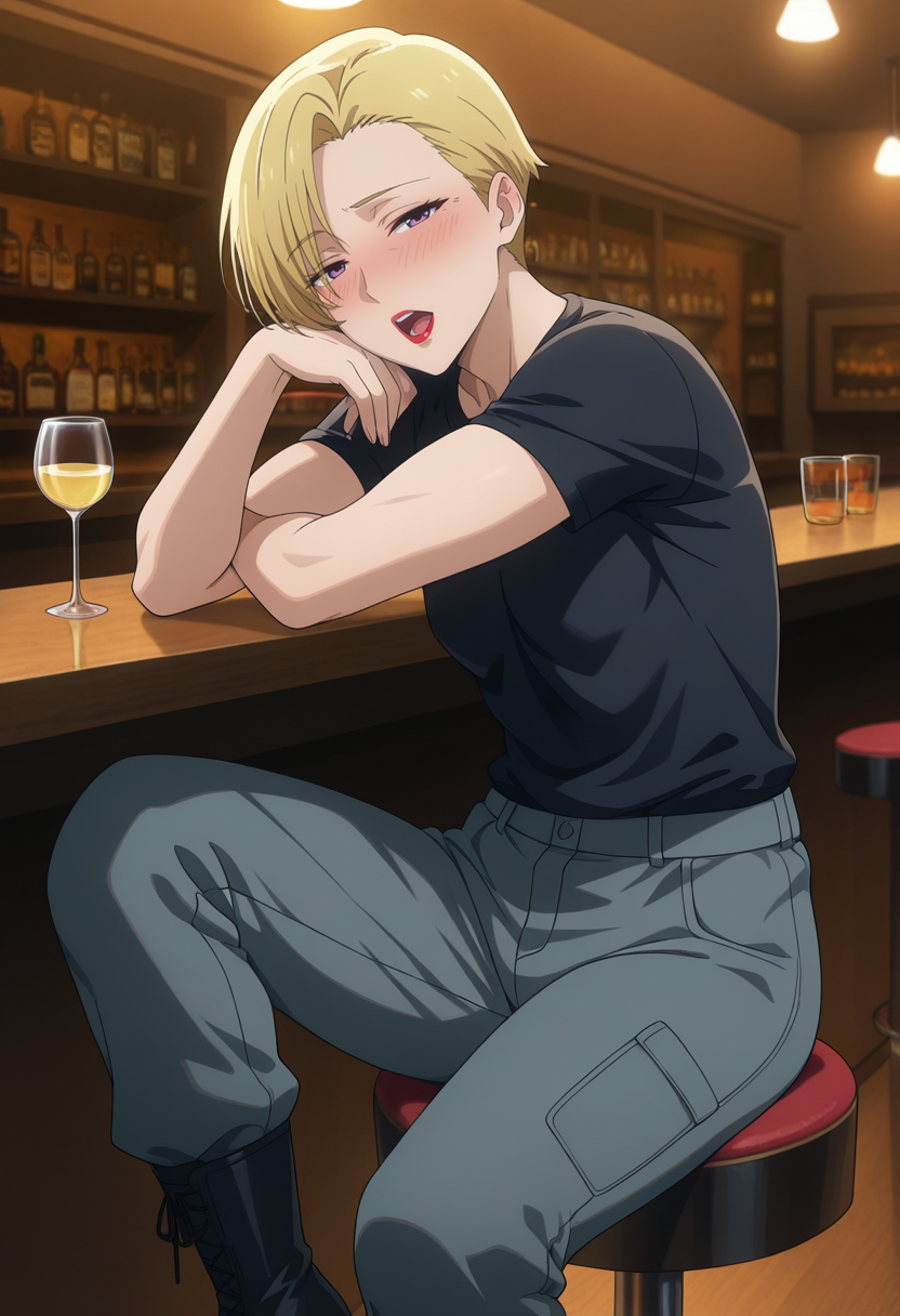 黑色衬衫, 短袖, 灰色长裤, 黑色靴子