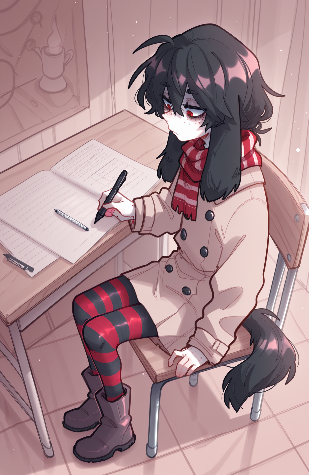 盲女: sophie \(popopoka\),雀斑,黑发,天线发,短发,灰眼睛