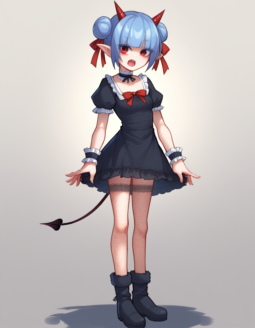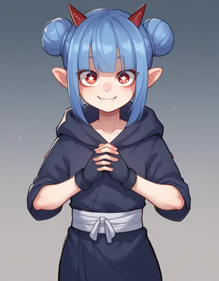 Nugget Wife (amputee optional): nugget waifu \(popopoka\), petite, twintails, long hair, black hair, red eyes, (quadruple amputee)
