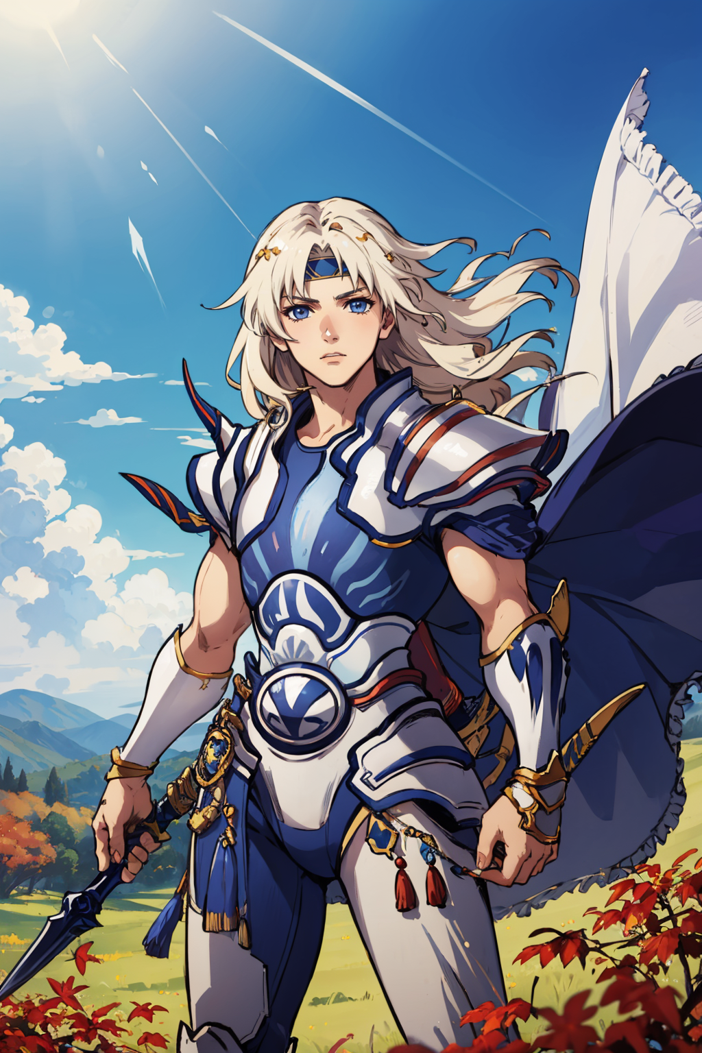 일반적인 모습을 원한다면 "헤드밴드, 망토, 흰색 갑옷, 장갑"을 추가하세요.