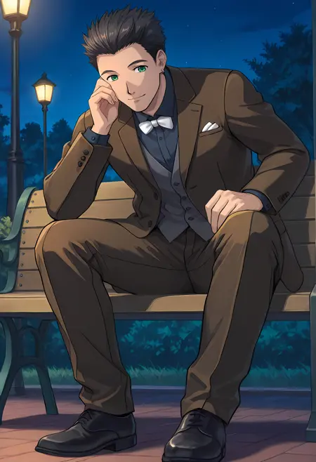 hair down, alternate hairstyle をポジティブ、spiked hair をネガティブに指定 – 彼の髪型はやや過学習されていますが、これらのタグで変更可能です!LoRAの強度を下げ(0.8程度が良い)、タグの重みを調整すると最も効果的です(例:hair down:1.2)。ショーケースの例もご確認ください!