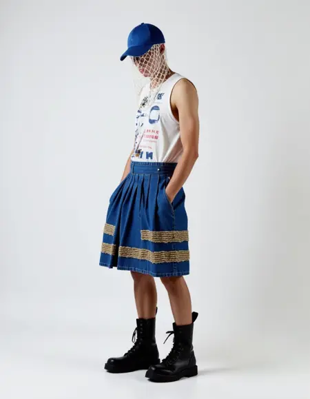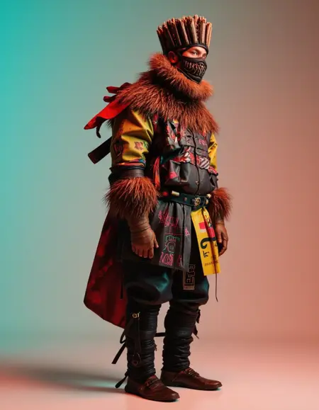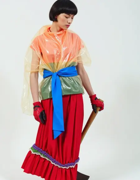 It doesn't aim to be just tacticool or cyberwear; it's a narrative and rebellious aesthetic, where each garment tells a story of survival, reuse, and imagination. The silhouettes are hybrid, sculptural, and unconventional. The use of recycled materials—such as bags, industrial fabrics, advertising banners, kitchen utensils, electronic parts, or broken furniture—creates garments that challenge symmetry, original function, and traditional dress norms.