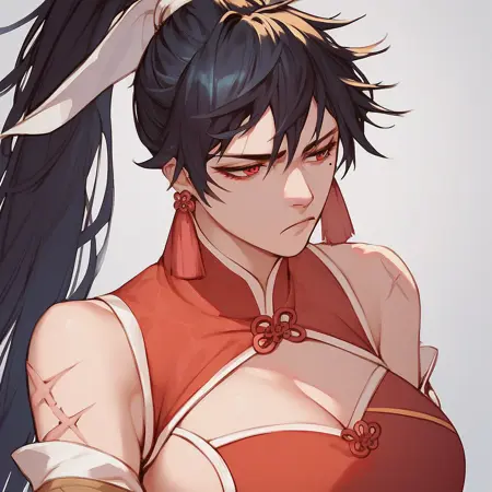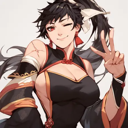 | 训练词汇 | chunyanep, long hair, red eyes, mole under eye, ponytail, scar on arm, black hair,已复制! black dress, chinese clothes, bare shoulders, cleavage cutout, jewelry, earrings, china dress, black thighhighs, detached sleeves, hair ribbon, bridal guantlets, wide sleeves, sideboob, pelvic curtain,已复制! |