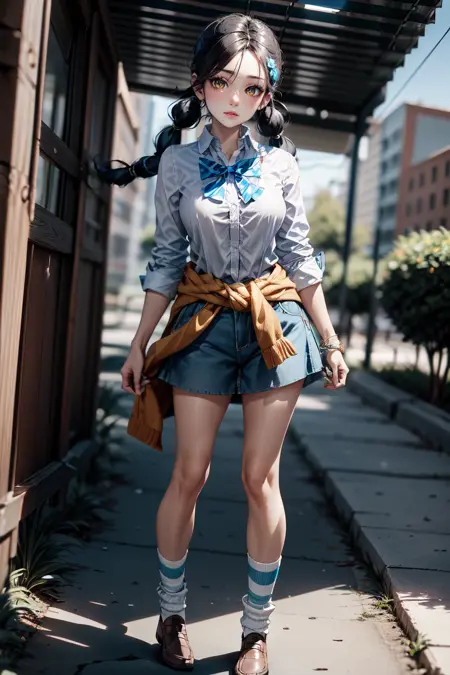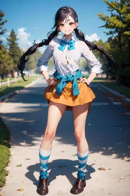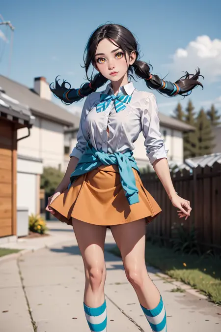 For this second version I changed the triggers and now the color of the sweater does not change so much, for example, of four generated images, one will appear with the orange sweater and if you use a realistic model it may change to shorts, but it does not give bad results in itself .