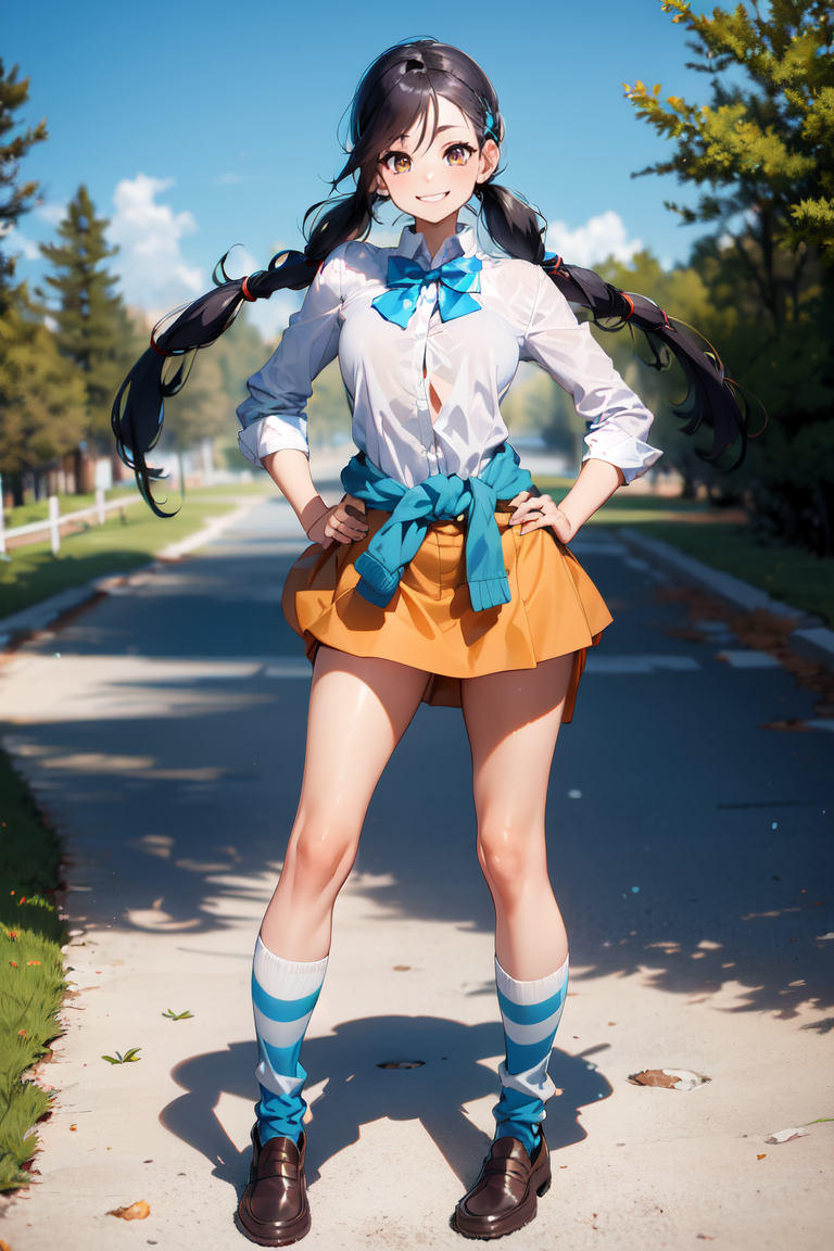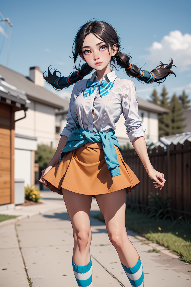 在这个第二版中,我修改了触发词,现在毛衣的颜色不会变化太大。例如,在生成的四张图片中,可能只有一张会出现橙色毛衣;如果你使用的是写实模型,它可能会变成短裤,但本身并不会产生糟糕的效果。