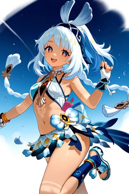 mualani \(genshin impact\),1girl,twin braids, skirt, swimsuit,hairband,
