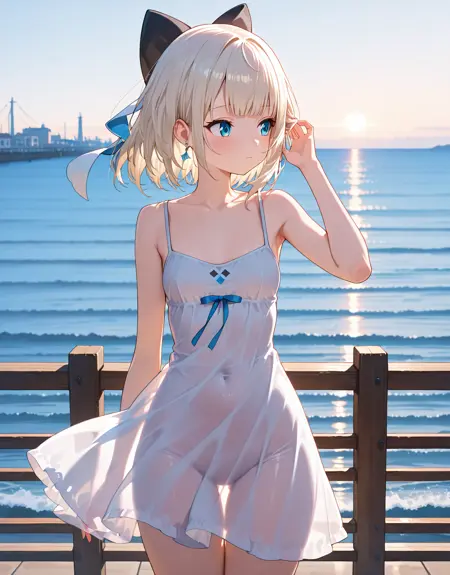 "sleeveless maid dress, waist bag, detached sleeves,"