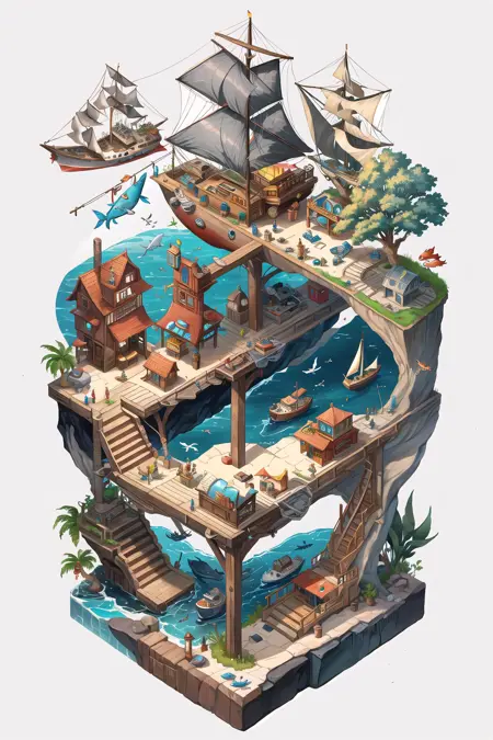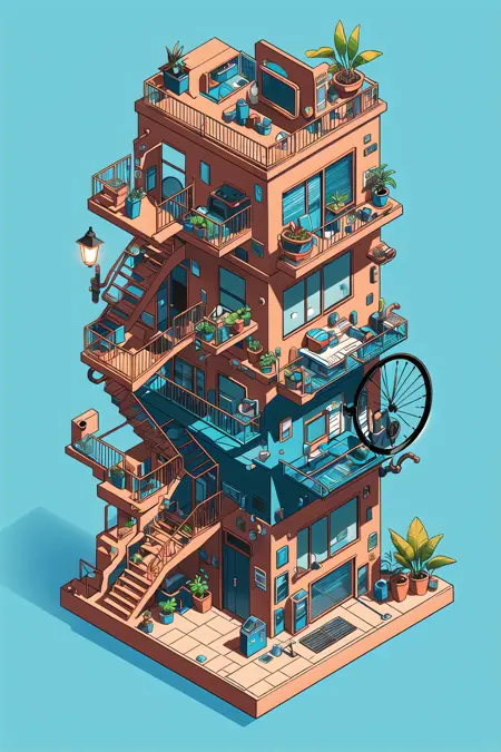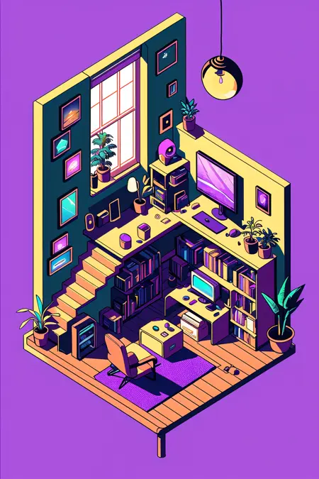 등변 / 다이오라마 - "isometric, diorama" 또는 "isometric cutaway" 사용