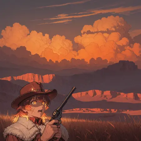 고도로 세밀한 구름과 웨스턴 테마에 초점을 맞춘 마크 마조리 스타일