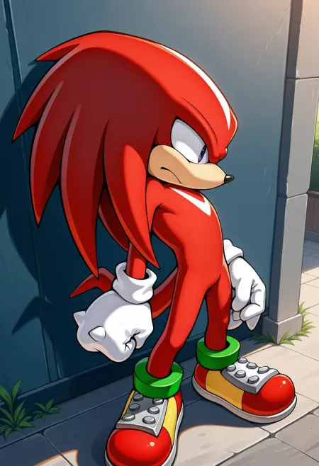 Main outfit: spiked gloves, green ankle bracelets, sneakers,