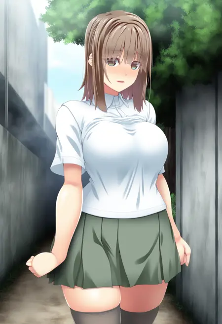 트리거 단어: c-hinagaki, 갈색 머리, 중간 길이 머리, 큰 가슴,