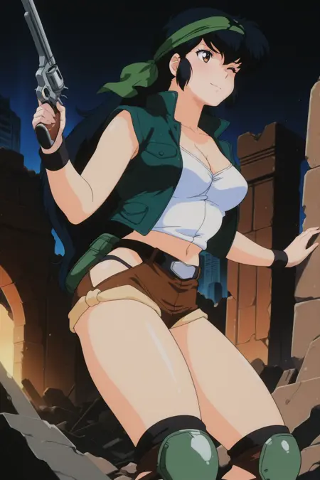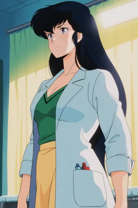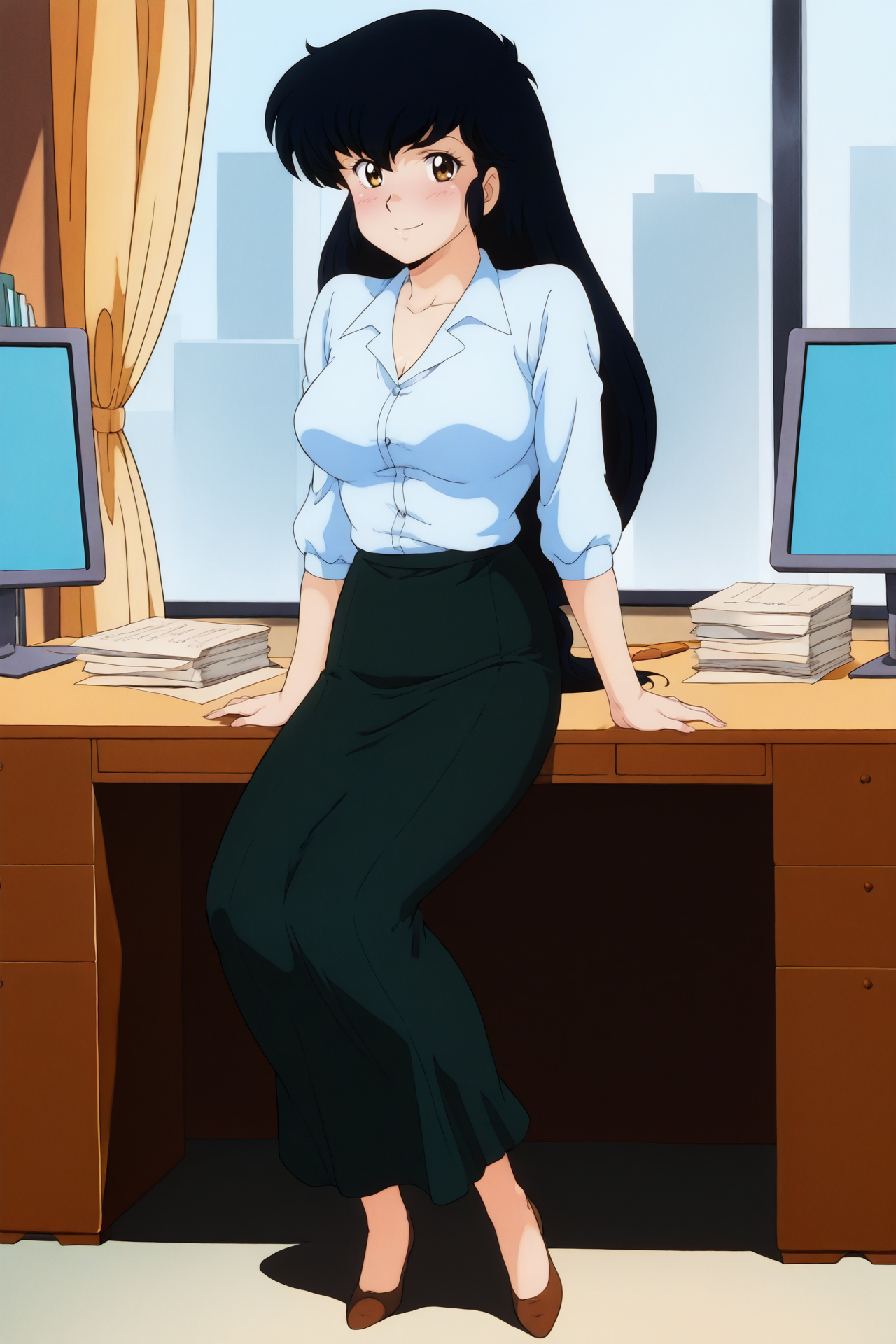 Main Tag: Sakura, black hair, long hair, brown eyes, large breasts, retro artstyle, 1980s (style)