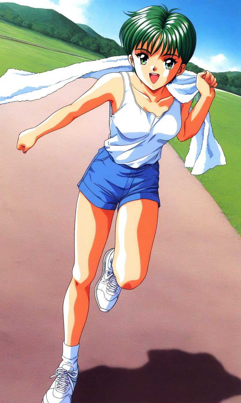 「ときめきメモリアル」より、超高校生級のスポーツガール、清川望さんのLoRAです。毎日50kmのロードワークをこなすという、もはや超人・サイボーグのような女の子。普段は男言葉ですが、打ち解けると一気に優雅な言葉遣いの普通の女の子に変わるというギャップも魅力。また、花が好きで雷が苦手という、非常に女の子らしい一面も持っています。