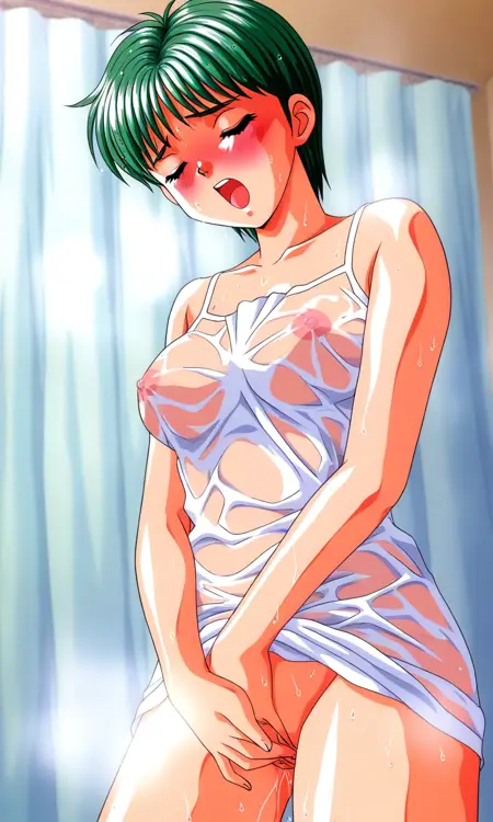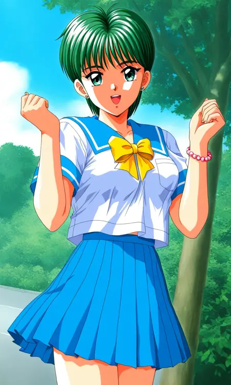 Kiyokawa_Nozomi(Tokimeki_Memorial), 1girl, solo, green hair, short hair, green eyes, bangs, medium breasts,