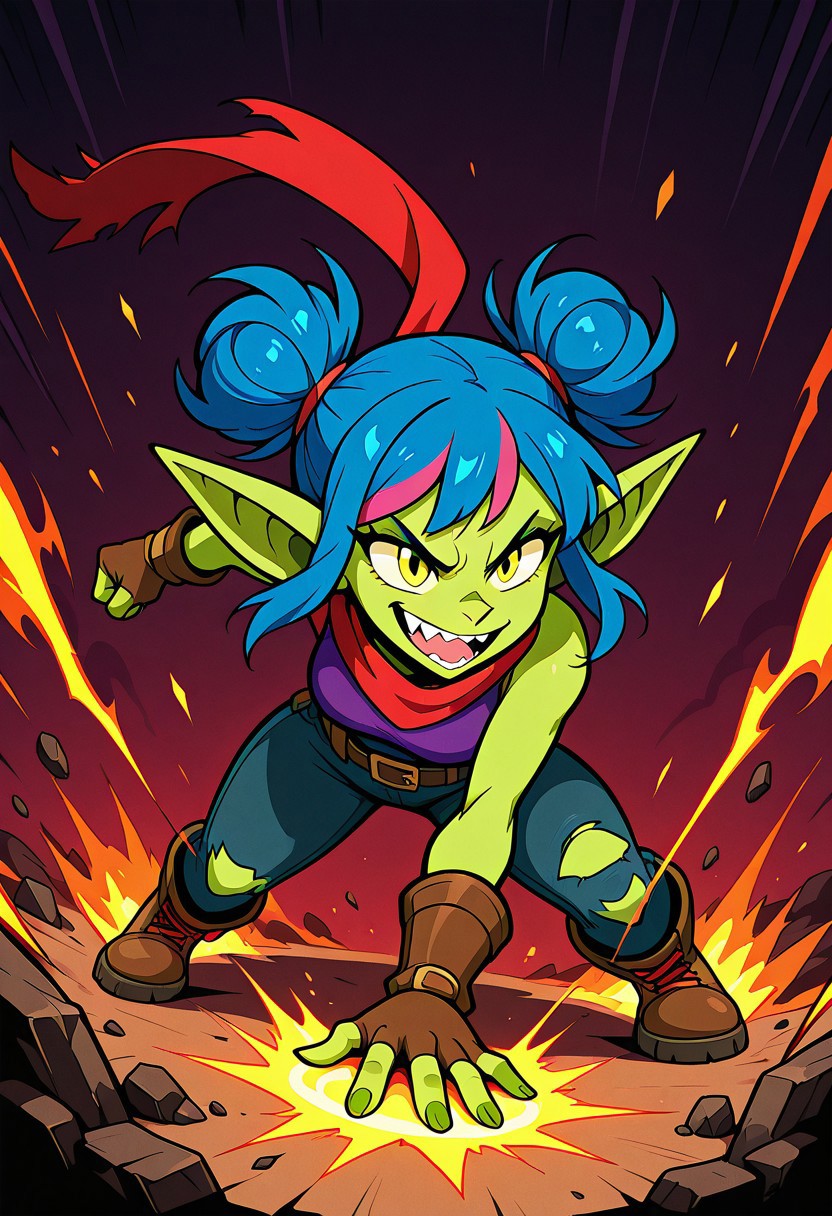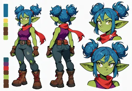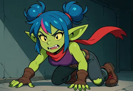 Daggerheart (SniktCore-SDXL) is a stylized LoRA for SDXL 1.0 featuring Snikt, also known by her alias Daggerheart—a sharp-toothed goblin with electric cobalt blue hair, a magenta streak, and lime green skin. This petite powerhouse comes to life with bold comic linework, cel shading, and high-energy attitude. Use sniktcore-sdxl to generate confident poses, expressive grins, and stylized action scenes.