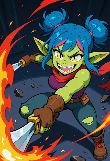 Daggerheart (SniktCore-SDXL) は、SDXL 1.0用のスタイリッシュなLoRAで、通称_Daggerheart_として知られる_Snikt_を特徴としています。彼女は鋭い歯を持ち、電気のようなコバルトブルーの髪にマゼンタのストライプ、ライムグリーンの肌をした小柄なゴブリンです。この小柄なパワーハウスは、大胆なコミック風ラインワーク、セルシェーディング、そして高エネルギーな態度で生き生きと描かれます。sniktcore-sdxlを使用して、自信に満ちたポーズ、表情豊かな笑顔、スタイリッシュなアクションシーンを生成してください。