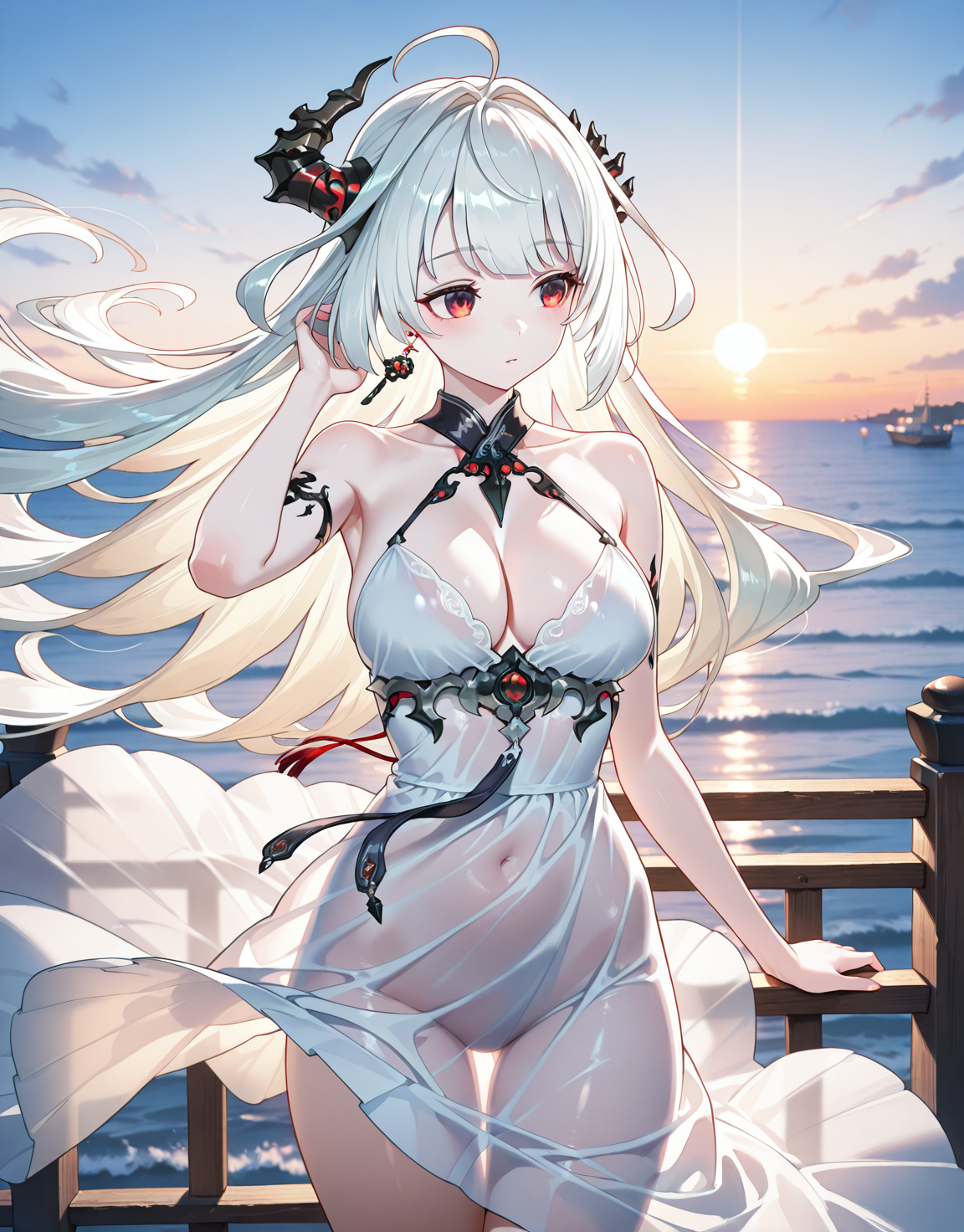 "sleeveless dress, detached sleeves, gloves, side slit,"